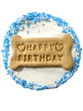 But the fun doesn't stop there! We've added a special touch to our cookie by frosting it with a decadent layer of low-fat yoghurt frosting, meticulously applied by hand. Topped with an embossed Happy Birthday Bone and surrounded by colourful sprinkles, this cookie is a festive treat that will make your pup feel extra special on their big day.