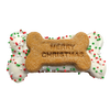 Celebrate Christmas with your dog with our Australian made gourmet dog treat, our Merry Christmas bone available in Carob or Yoghurt. This treat is delicious and is made from an all-natural nutty base and is a bone shaped biscuit, coated in our low-fat yoghurt no melt frosting. Then to make it very festive for Christmas we add a specially imprinted Merry Christmas Cookie on top. This is a hard baked cookie base and hard frosting designed specifically for dog jaws and chewing habits – ideal for added dental benefits. This helps with increasing the chew time for the dogs enrichment and the dogs parents enjoyment time. The minute the dog starts to devour the cookie the cookie starts to soften, no cutting required – they are designed to last longer than the usual cookie and not crumble.